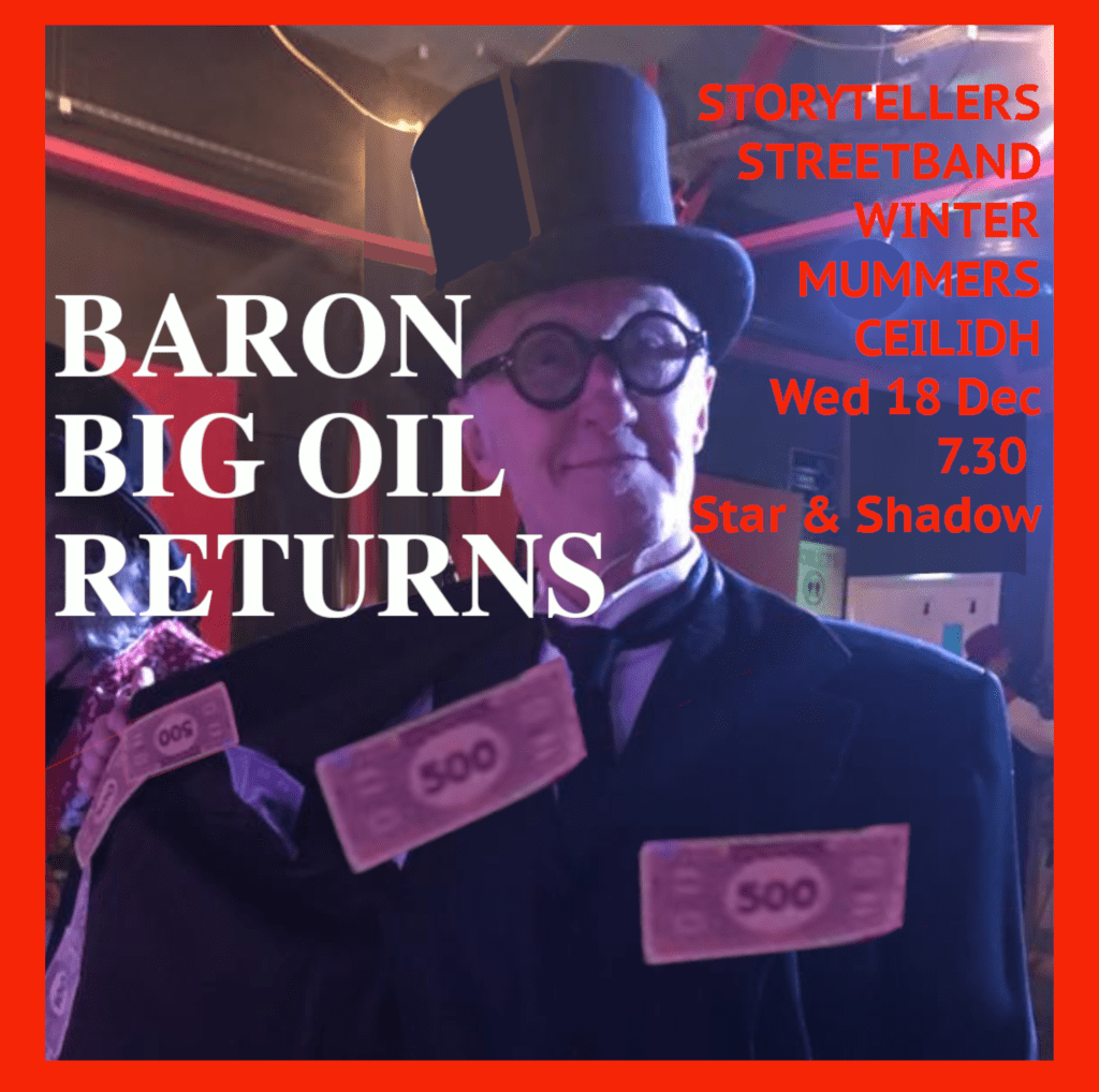 Announcing ‘BARON BIG OIL RETURNS’ our annual Mummers Ceilidh at the Star and Shadow.