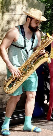 Stu Finden: sax & flugel. Fi Finden: soprano sax. Ken Patterson: tuba. John Calvert: tenor sax. Alison Paton: drums. Irenka Hurdova: trombone. Hal Lockwood: bari sax. Polly Corbishley: trumpet. Bridget Enever: alto sax. Mike Soanes: timbales, Do, Lydon: banjo
